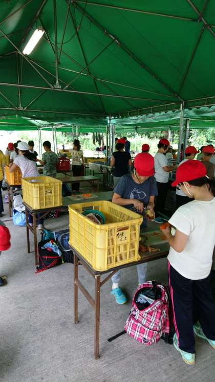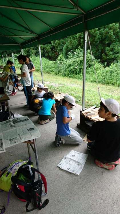 今日の昼食、カレー作りが始まりました。グループ内で役割分担し、火おこしと材料準備をしています。