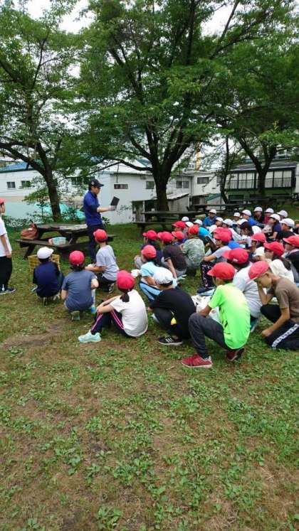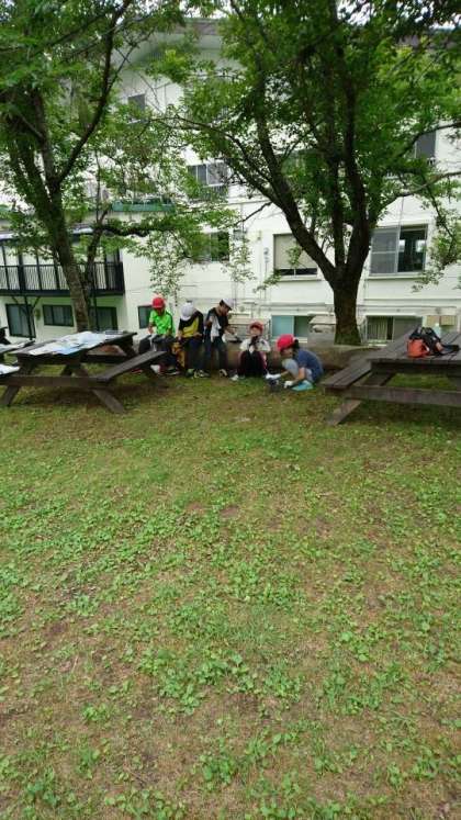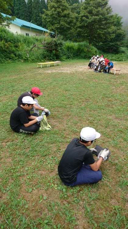 午後の活動、焼き板工作が始まりました。板の炭をごしごし、こすっています。