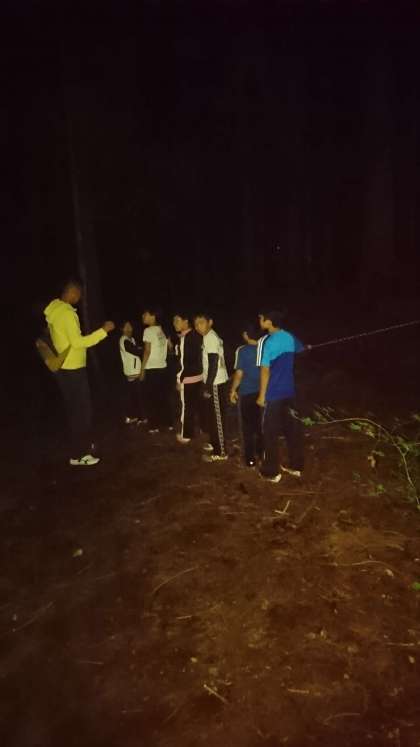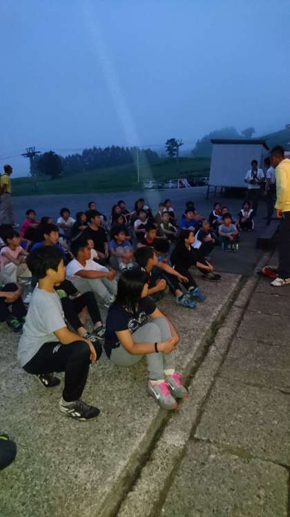 夜の活動、ナイトハイキングへ行きました。くもり空で星は少ししか見えませんでしたが、一瞬、月が明るく輝くのを見ることができました。