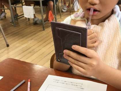 今日は歯科衛生士の方々に歯磨き指導をしていただきました。歯の名前や歯垢について知り、歯ブラシの持ち方をわかりやすく教えてもらいました。鏡を見ながらゆっくりていねいに磨き、「ピカピカ、つるつるになったよ!」と子どもたちはみんな嬉しそうでした。給食後も学んだことを忘れず、一生懸命歯を磨いていました。どの子も「お家でもがんばるぞ!」とやる気でいっぱいです。