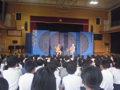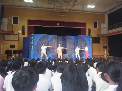 公演後は、講堂出口で、劇団員のみなさんが見送ってくださいました。楽しい公演をありがとうございました。