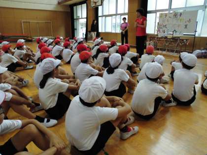 5年生は、今日(20日)の2・3時間目に、トップアスリートによる夢・授業がありました。岩城ハルミさんと成平薫さんにお越しいただき、スポーツにおける大切なことやご自身の経験をお話ししてくださったり、バドミントンを一緒にしてくださったりしました。講話では継続することの大切さを実感し、実技ではバドミントンの楽しさと失敗してもあきらめない気持ちの大切さを教わりました。