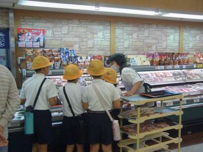 今日(26日)の午前中、3年生は社会科の学習で「関西スーパー」へ見学に行きました。クラスごとに、売り場とバックヤードとに分かれて見学しました。