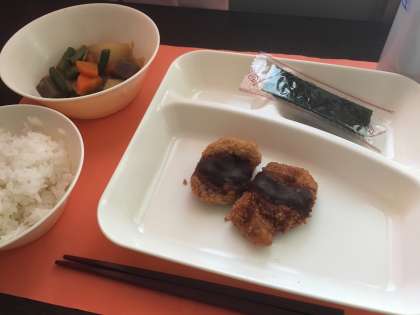 今日のカツは調理員さんの手作りです。朝から豚ヒレ肉を解凍し、ひとつづつ丁寧にパン粉をつけて油であげました。みそだれは八丁味噌、赤みそ、砂糖、みりんをあわせてこちらも手作りです。もちろん大人気で、完食でした。