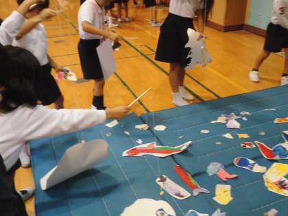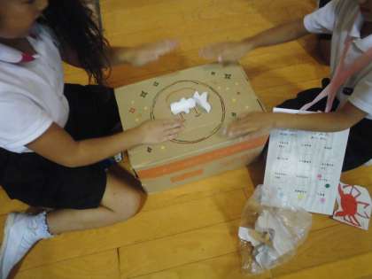 11日の午前中におもちゃ大会を開き、1年生を招待してみんなで楽しく遊びました。この日のために、2年生のみんなで一生懸命おもちゃを作りました。そのおもちゃで1年生が楽しんで遊んでくれている様子を見て、2年生もとても嬉しくなりました。