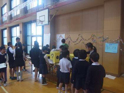 どの班も高学年のリーダーを中心に、なかよく協力して活動していました。中・低学年の児童も、受付や宣伝など自分の役割をいっしょうけんめい行っていました。