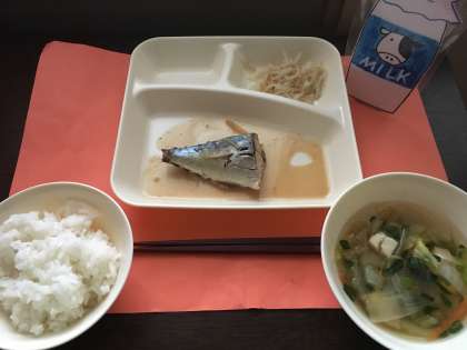 さばの味噌煮 すまし汁 もやしのゆずの香あえ ごはん 牛乳