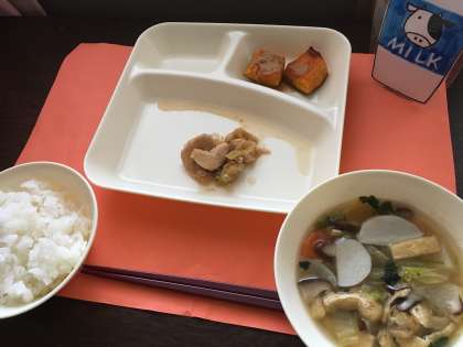 でんぷんでつけたとろみで体がとても温まるので、寒さの厳しい今日は子どもたちもうれしい献立でした。
