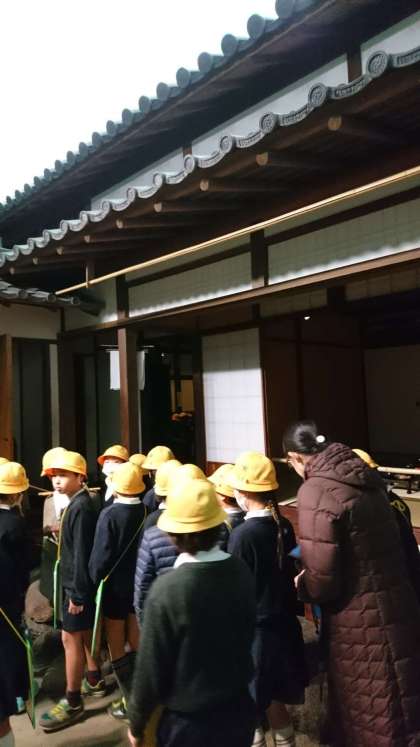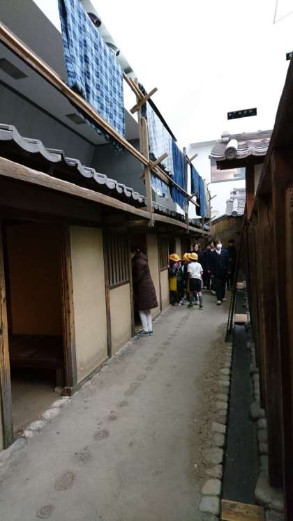 大阪の町を歩きながら、昔のくらしの様子を見学しています。
