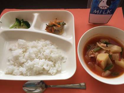 いつもよりさらに野菜たっぷりの給食を、今日もたくさんいただきました。