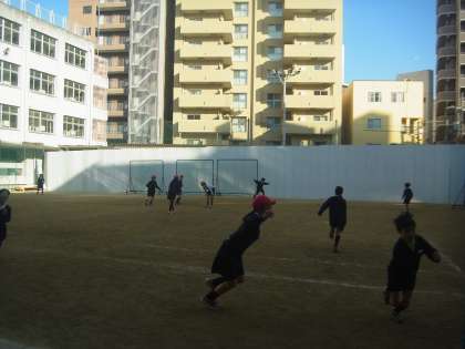 今朝の(23日)児童集会は、たてわり遊びでした。班長さんを中心に、室内ではフルーツバスケットやハンカチ落とし、運動場や講堂ではしっぽ取りやドッジボールをして、楽しく活動していました。