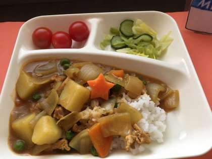 チキンカレーライス キャベツときゅうりのサラダ プチトマト 牛乳
