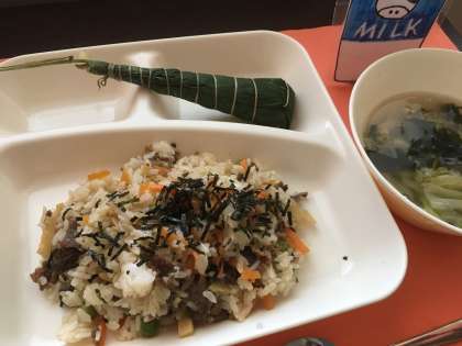 牛肉のちらしずし すまし汁 ちまき 牛乳