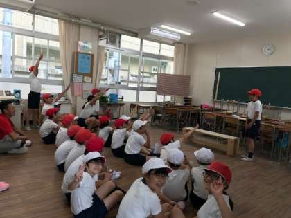 室内運動クラブ・屋外運動クラブです。屋外運動は雨天のため、運動場で活動できませんでしたが、教室でジェスチャーゲームを楽しみました。