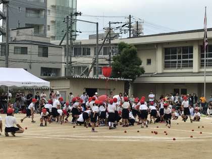 1・2年団体競技「Dance☆たまいれ」の様子です。