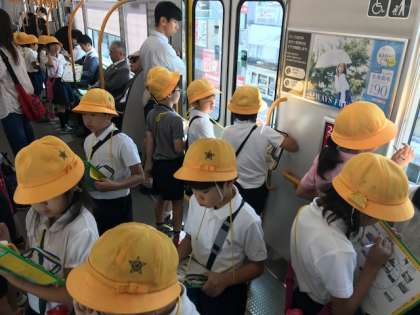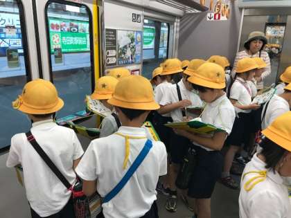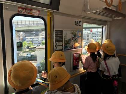 3年生は社会見学で、JR環状線一周と、「あべのハルカス」へ行きました。電車の中から見える風景や、それぞれの駅の様子を、熱心にメモしていました。