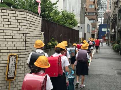 地域ごとに、登校班での1学期のふり返りをしました。地域に危険な場所がないかも確認しました。各班から出た反省を生かして、これからも、きちんと並んで登校しましょう。