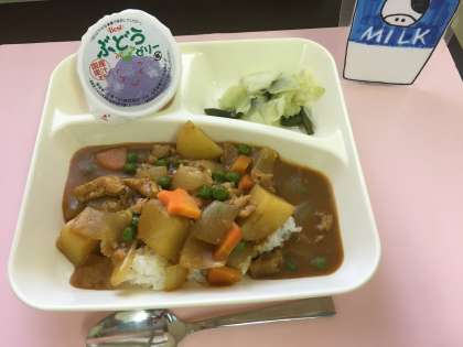 大人気のカレーにデザートのぶどうゼリーもついて、どの学年も大喜びで