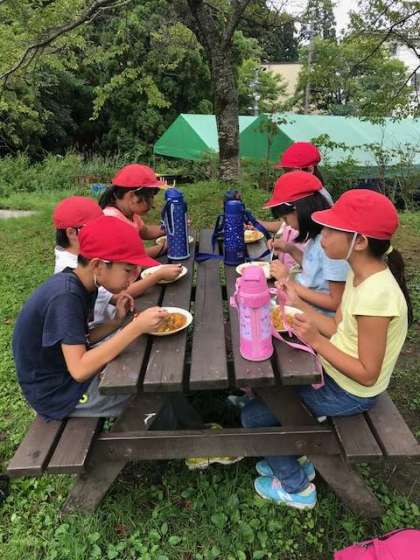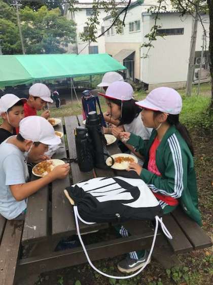 自分達でがんばって作ったカレーの味は格別です。おかわりもしてます。