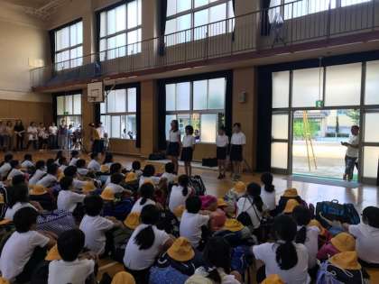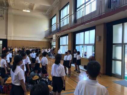5年生全員無事に帰ってきました。出発式の時より成長した顔が見られました。林間学習の感想とこれからの抱負を言いました。この経験をこれからの学校生活に活かしていきましょう。