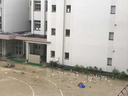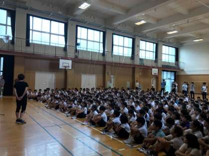 昨日の台風で、本校もいくつかの場所に被害がみられました。今朝、臨時児童朝会を行いました。昨日の様子についてや先生方の体験談を聞くことによって、改めて自然の恐ろしさを知りました。自然災害の備えについて再確認することができました。