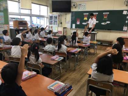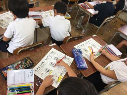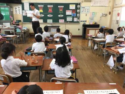 1年生の食育の授業がありました。好き嫌いなく食べることの大切さを学びました。
