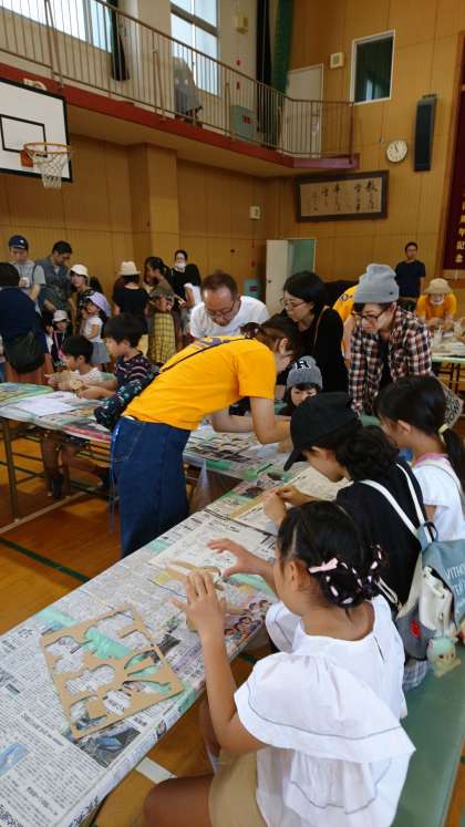 今日(8日)、ふれあいまつりが小学校の校庭で行われました。天気にも恵まれ、多数の地域の皆様にお集まりいただき、大盛況でした。本校の児童や卒業生も、たくさん参加していました。工作やゲームを楽しんだり、綿菓子や各コーナーに長い列を作ったりしてしていました。