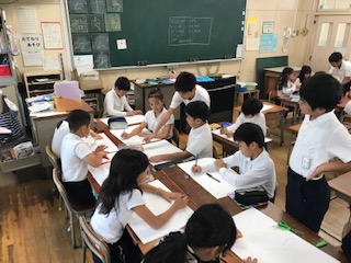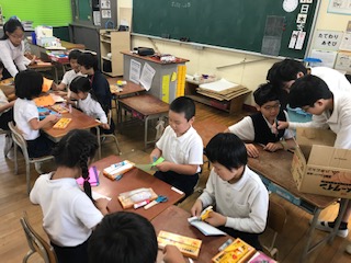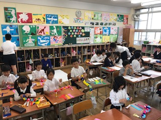 30日(火)の「校内オリエンテーリング」に向けて、たてわり班ごとにゲームの準備をしました。6年生の子達に自分の役割をしっかりと聞いて、がんばって作成しています。