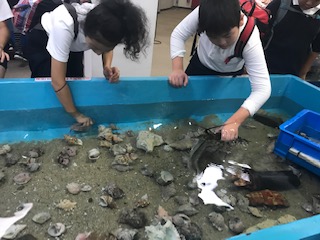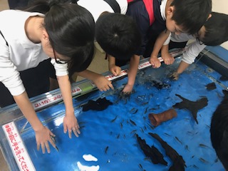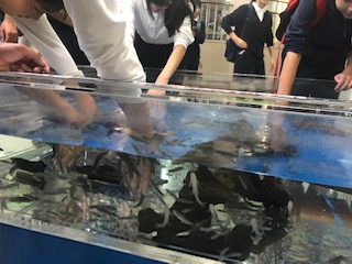 ドクターフィッシュや伊勢エビにも触っています。子どもたちは大興奮です。