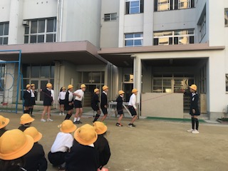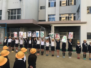 今朝の児童朝会で、今月のめあてについて運動委員会の発表を聞きました。11月のめあては「みんなで力を合わせよう」です。委員会の人子たちが、よい例と悪い例を示してくれました。みなさん、ひとりひとり力を合わせて、がんばって活動に取り組んでいきましょう。