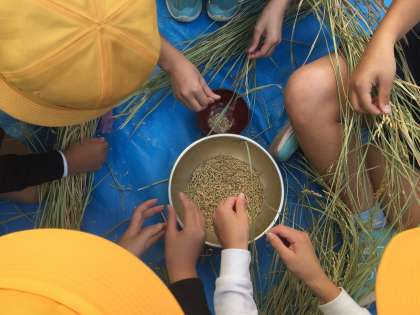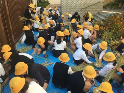 今日の5時間目に,以前収穫したお米の脱穀をしました。校長先生に脱穀の仕方を教えていただき,一粒も無駄にしないように,ていねいに取りました。最初はなかなか上手にできなかったのですが,無心になってやっていくうちに,脱穀したお米がどんどん増えていきました。一粒ひと粒,大切なお米です。精米した後にどれぐらいの量になっているのか,今から楽しみです。