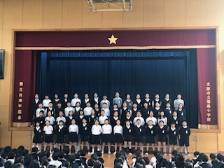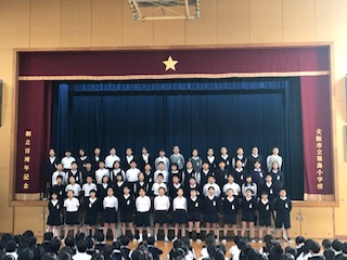 今日の音楽集会は、5,6年生の発表でした。5年生は‟Can do!!”と気合を入れてから歌いました。「いつでもあの海は」と「ビリーブ」の2曲を歌いました。何度も練習してきた成果が表れ、高音部の響きがとても美しかったです。