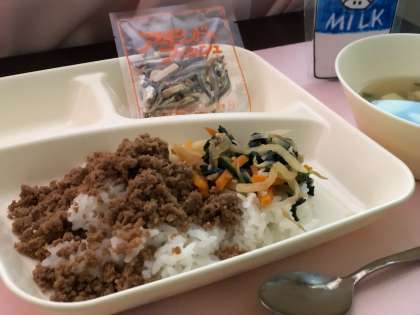ビビンバ わかめスープ アーモンドフィッシュ 牛乳