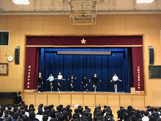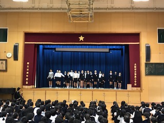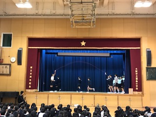 今週の児童集会は、運動委員会の発表でした。来週からの「なわとび週間」に向けて、なわとびの色々な跳び方を発表しました。委員会の児童は、この日のために、毎日一生懸命練習してきました。その成果がしっかりと発表に生かされていました。