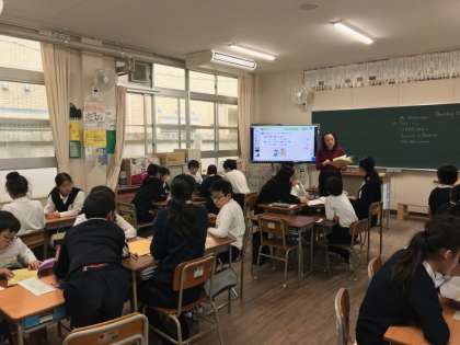 下福島中学校の英語の先生に来ていただいて、6年生は、実際に中学校で行われている英語の授業を体験しました。中学1年生が使っている教材を使って学習しました。子ども達は、推測しながら英語を聴きとろうと集中して取り組むことができました。中学校への期待と不安はありますが、頑張ろうと改めて思ったようです。