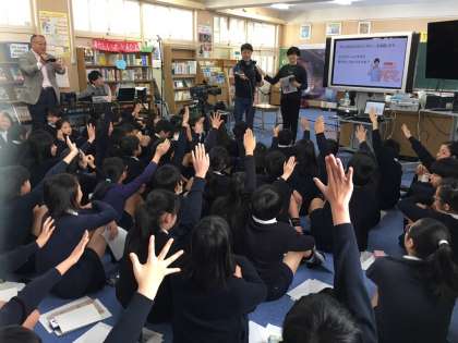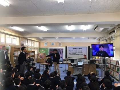 1月17日の2、3時間目に、朝日放送の出前授業「エビシー教室」がありました。朝日放送は校区にあり、身近な放送局です。みんなこの日を、心待ちにしていました。