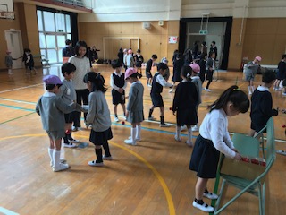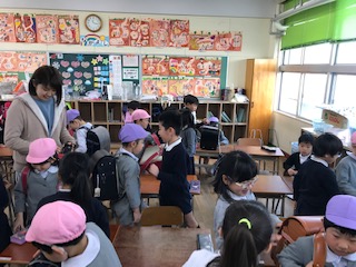 本日、1年生は下福島幼稚園のみなさんと「わくわく交歓会」を行いました。4月から1年生になる子達に、学校生活について教えたり、お手玉やけん玉などの昔遊びをいっしょにしたりしました。給食の様子も見ていただきました。1年生の子たちはさすがもうすぐ2年生、ちょっぴりお兄さんお姉さんになって、優しくていねいに教えている姿が見られました。