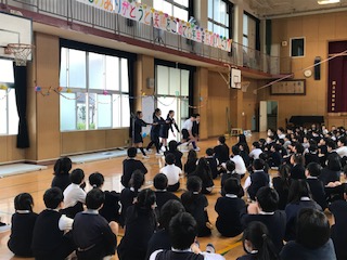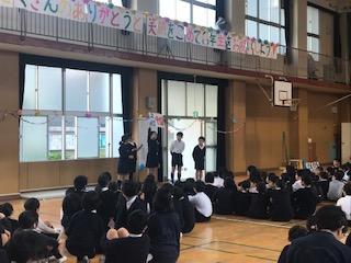 今朝の児童集会は「国名当てクイズ」でした。集会委員会の子たちが出したヒントをもとに、たてわり班で考え答えを発表しました。意外な答えもあり、驚きました。次は今年度最後の児童集会です。最後まで、たてわり班で楽しんでほしいと思います。