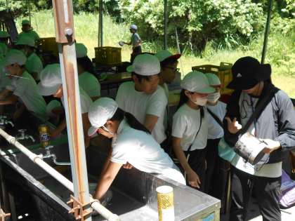 声を掛け合い、率先して食器を洗う子どもたちの姿が見られました。