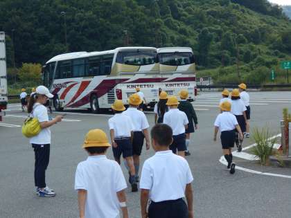 先ほど1回目のトイレ休憩が終わりました。現時点では、学校到着が17時過ぎになる見込みです。交通状況等により前後しますことをご承知おきください。