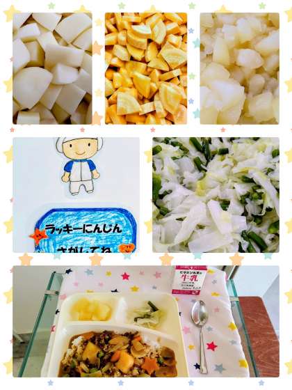 2学期最初の給食は、アレルギー食対応の児童も食べる事ができる米粉のルウを使用したカレーです。デザートにりんご(カット缶)がでました。さっぱりとした口当たりで美味しかったです。