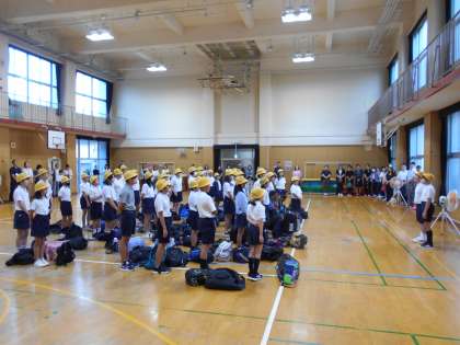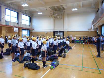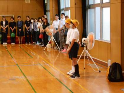 学校では出発式を行い、お見送りいただいた保護者の方や教職員の皆さんに「いってきます」と挨拶しました。