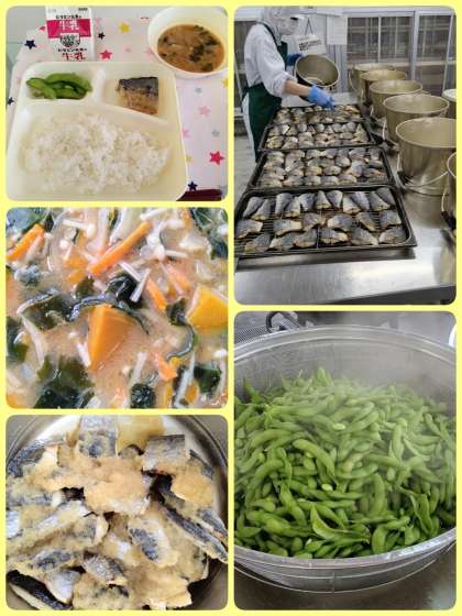 『さごしのみぞれかけ』は、焼いたさごしに、だいこんおろし、みりん、うすくちしょうゆ、ゆず(果汁)で作ったタレをかけています。魚の苦手な児童にも食べやすい味つけになっています。『かぼちゃのみそ汁』は、甘みのあるかぼちゃと玉ねぎなどをを使用した具だくさんのみそ汁です。