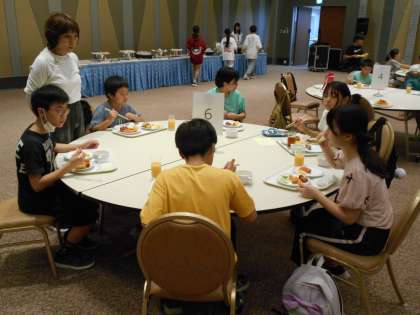 デザートもたくさん用意していただき、子どもたちは時間いっぱい夕食を楽しみました。