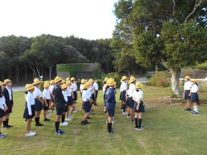 朝の会が終わり、その後の予定を確認してから朝食会場へと向かいました。