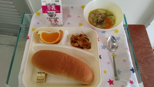 ポトフ 鶏肉と野菜のケチャップソテー デコポン コッペパン バター 牛乳