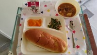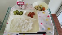 『中華おこわ』は、焼き豚、くり、しいたけを使用し、もちもちとした食感の中華風味のおこわです。児童に人気の一品です。『キャベツのオイスターソースいため』は、キャベツの甘みも感じられる献立です。卵スープといっしょに美味しく頂きました。