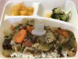 12月18日金曜日の献立 鶏肉と野菜の煮もの じゃこ豆 あっさりきゅうり ごは...