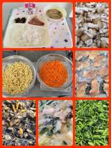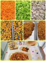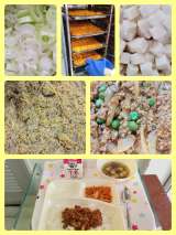 今日の献立 金時豆の中華おこわ まる天と野菜のうま煮 パインアップル(カット缶...