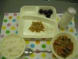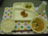 ★9月11日の献立★ ピリからあげ、具だくさんみそ汁、 グリーンアスパラガスとコ...
